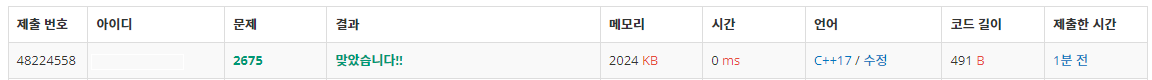 한 가지 주의해야 할 점이 있었는데, 변수 R을 입력 받은 후 바로 문자열(S)을 입력받을 경우 개행 문자(\n)가 문자열에 입력 받게 되는 현상이 발생한다는 것이었다. 이 문제를 해결하기 위해서 getline() 코드 앞 부분에 cin.ignore() 함수를 추가하여 표준 입력 버퍼를 비워주도록 하였다. (자세한 내용은 이곳을 참고한다.)