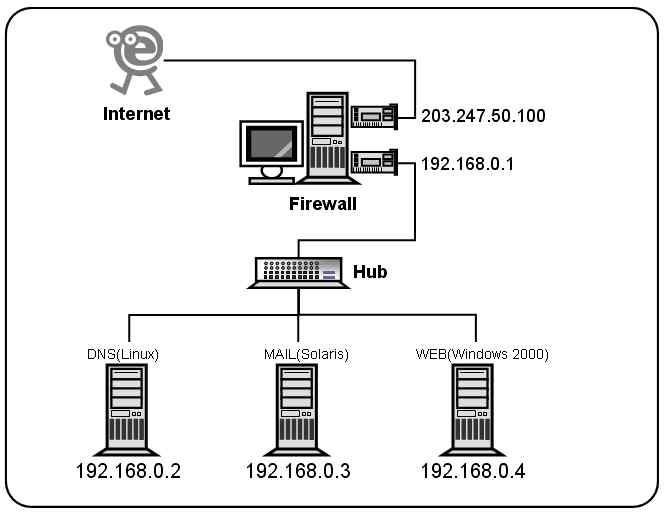 - 외부로부터 들어오는 웹 서비스 요청을 내부의 사설 IP 주소가 192.168.0.4인 웹 서버로전달한다.
