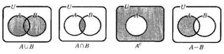 - 전체 집합과 그 부분 집합의 관계, 또 부분 집합과 부분 집합의 합집합 및 교집합, 그리고 부분 집합의 전체 집합에 관한 여집합 등을 폐곡선으로 나타낸 그림이라고도 표현할 수 있다.