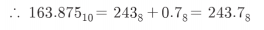 $243.7_{8} = 2 × 8^{2} + 4 × 8^{1} + 3 × 8^{0} + 7 × 8^{-1} = 163.875_{10}$