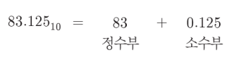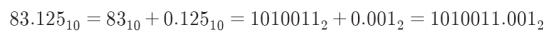 예제 1 : $83.125_{10}$ 를 2진수로 변환하기