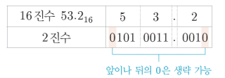 - 한 자리의 16진수를 2진수로 표현하려면 최대 4비트가 필요하다.