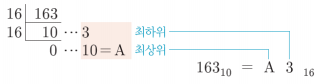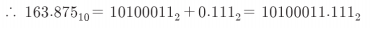 예제 2 : $163.875{10}$ 를 ① 2진수, ② 8진수, ③ 16진수로 변환하기