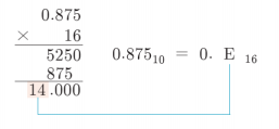 - 소수부가 0이 될 때까지 변환하려는 기수로 곱하면서 각 단계마다 나오는 정수부의 값을 나열하는 방식으로 구한다.
