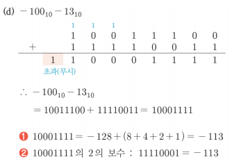 예제 2 : 1워드가 1바이트 일 때, 부호-2의 보수를 이용하여 다음을 연산하라.
