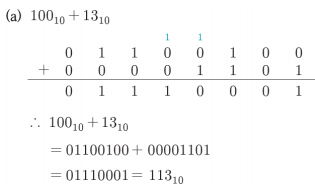 $100_{10} = 1100100, \; |13_{10}| = 1101$ 이고, 각 수에 대한 부호-절댓값 표현과 부호-2의 보수 표현은 다음과 같다.