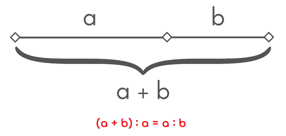 - 유클리드는 황금비가 "한 선분을 전체 직선과 긴 선분의 비가 긴 선분과 짧은 선분의 비와 같도록 나누는 것" 이라고 정의하였다.