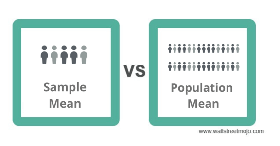 - 모평균과 표본 평균은 각각 다음과 같이 구한다.