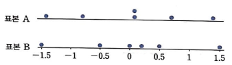 예 : 두 표본 A [4 9 3 5 7] 과 표본 B [400 900 300 500 700]