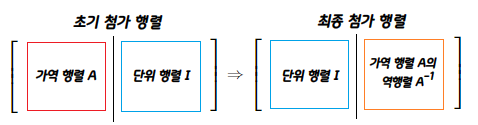 첨가 행렬의 왼쪽 부분을 단위 행렬로 만들었다.
