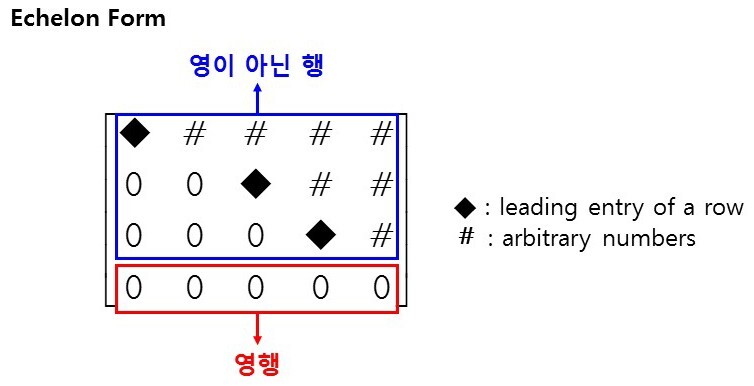 ③ 모든 행의 0이 아닌 첫 번째 원소(◆)는 상위 행의 0이 아닌 첫 번째 원소보다 오른쪽 열에 위치한다.