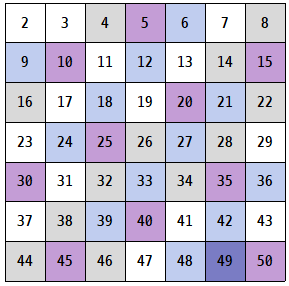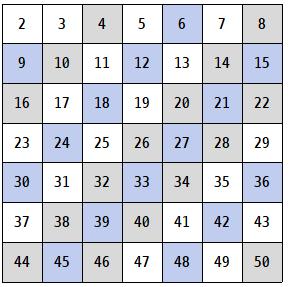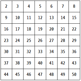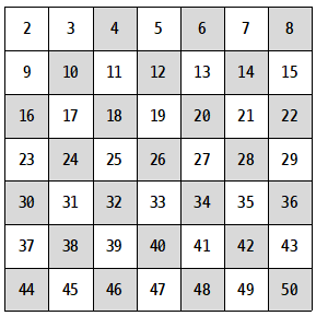 2부터 50까지 범위 내에 존재하는 소수를 구해본다.![]() |