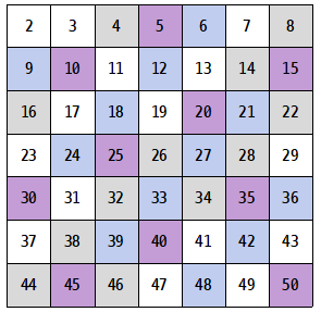 2부터 50까지 범위 내에 존재하는 소수를 구해본다.![]() |