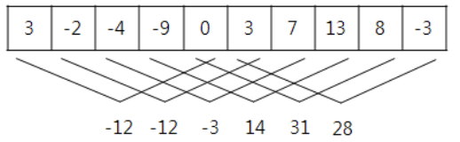 또 다른 예로 위와 같은 온도가 주어졌을 때, 모든 연속적인 5일 간의 온도의 합은 아래와 같으며,