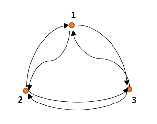 | $$\quad \quad \quad \quad \begin{matrix} 1 & 2 & 3 \end{matrix} \\ M_{R_{1}} = \begin{matrix} 1 \\ 2 \\ 3 \end{matrix} \begin{bmatrix} 0 & 1 & 1 \\ 1 & 0 & 1 \\ 1 & 1 & 1 \end{bmatrix}$$ | ![]() |