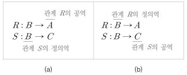 - 합성 관계를 구하려면 둘 이상의 관계 사이에 공통으로 사용되는 자료 집합이 있어야 한다.