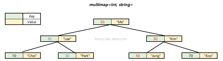 - map과 거의 동일하지만, 키(Key) 값이 중복 가능한 컨테이너