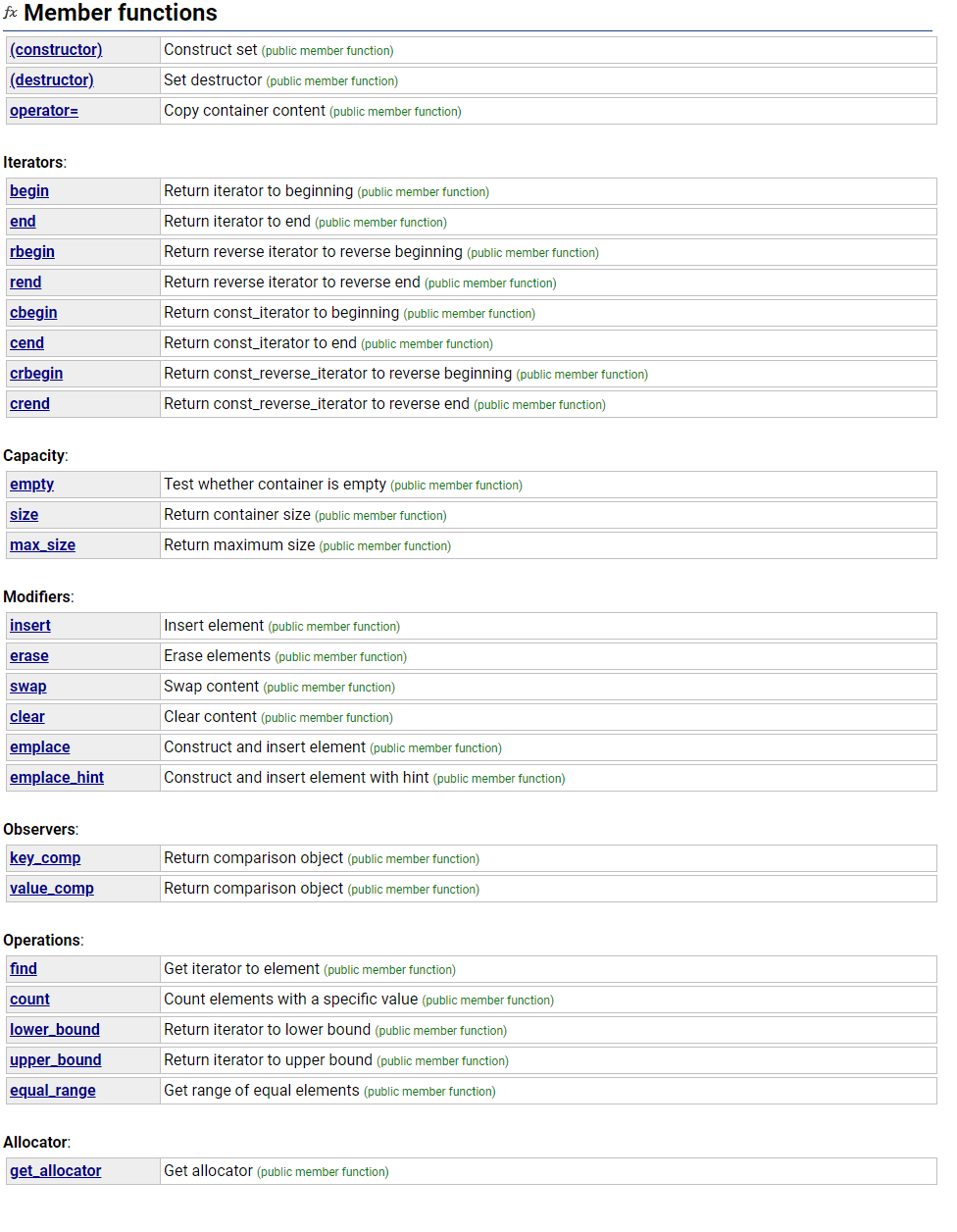 - 연관 컨테이너에는 set, multiset, map, multimap 이 있다.