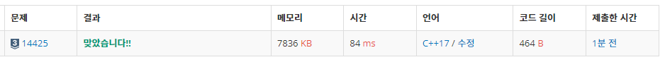 - 찾을 문자열을 하나씩 입력 받으면서 find() 함수를 이용하여 문자열이 들어있는 집합에서 바로 찾는 과정을 수행하고, 찾았을 경우 카운팅을 해주도록 하였다.