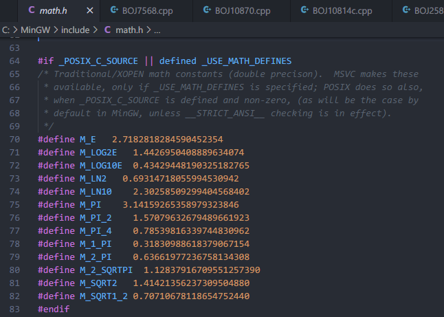 - 이제 수학 관련 상수들을 사용할 수 있다. PI는 M_PI와 같이 사용하면 된다.