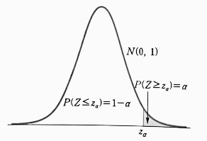 $$P(Z \le z_{α}) = 1 - α, \; P(Z \ge z_{α}) = α$$