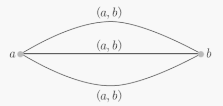 그러나 일반적인 그래프에서 정점 `a` 와 `b` 에 근접하는 변을 표현하는 정점의 쌍 `(a, b)` 는 순서쌍 `(a, b)` 와 달리 정점 `a` 와 `b` 사이의 순서에 의미가 없다.