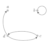 정점 `a` 의 경우, 정점 `a` 를 끝점으로 하는 화살표만 존재하므로 정점 `a` 의 외차수와 내차수는 다음과 같다.