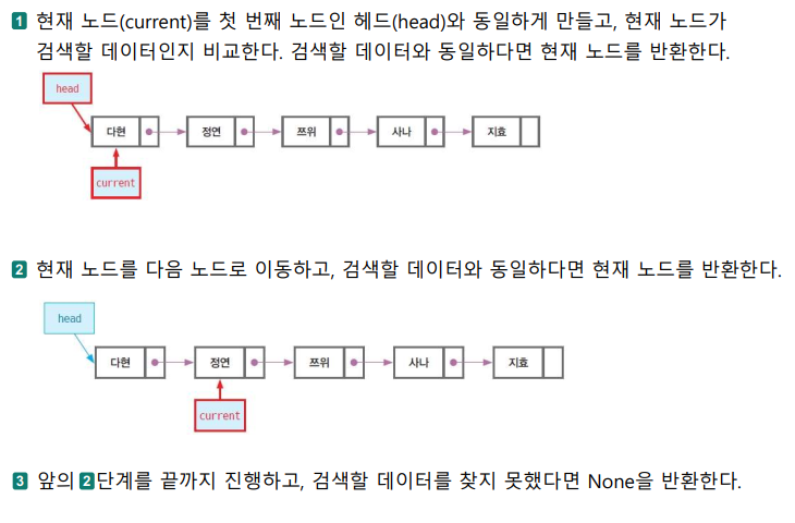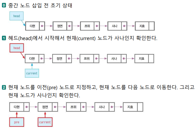 - 현재(current) : 지금 처리 중인 노드를 가리킨다.