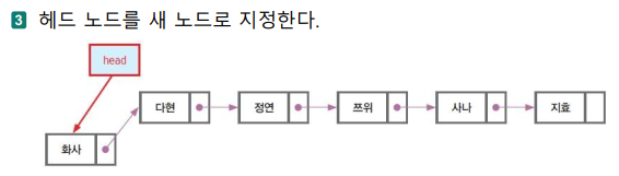 - 이전 노드의 링크에 새 노드를 지정한다.