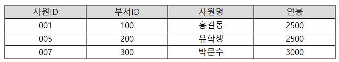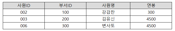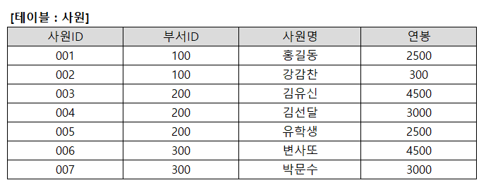 Q. 다음 중 [사원] 테이블에 대하여 아래와 같은 SQL을 수행하였을 때 예상되는 결과로 가장 적절한 것은?