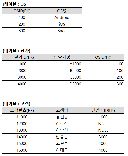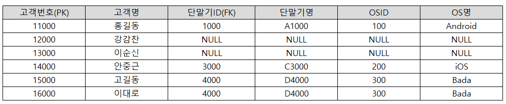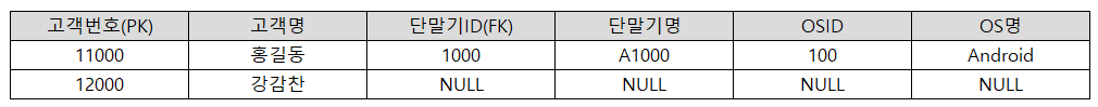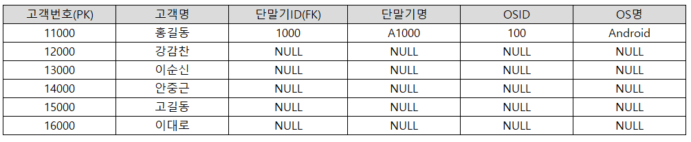 FROM 고객 A LEFT OUTER JOIN 단말기 B