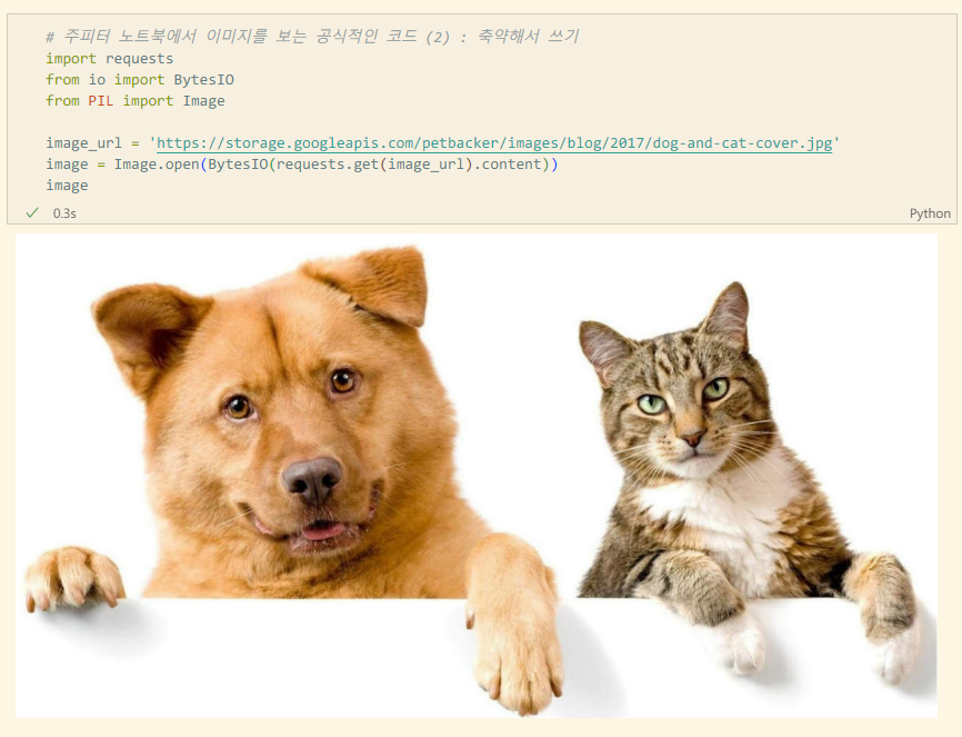 - 파이썬에서 이미지를 불러오고 표현하려면 @requests@, @io@, @PIL@ 모듈(파이썬을 설치할 때 포함되는 내장 함수이다.)을 불러오면 된다.