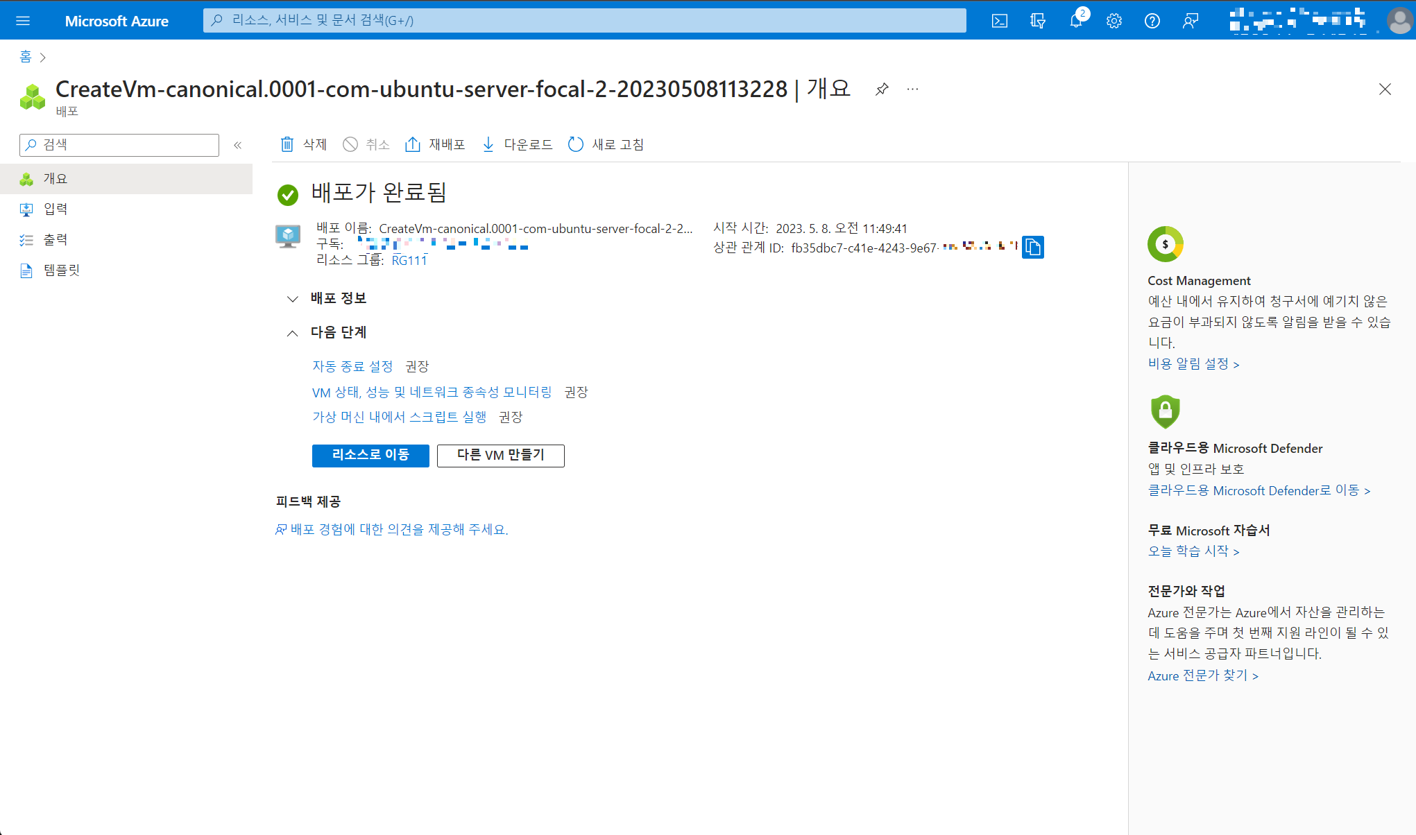 Azure를 이용한 리눅스 VM 배포/연결 및 실습