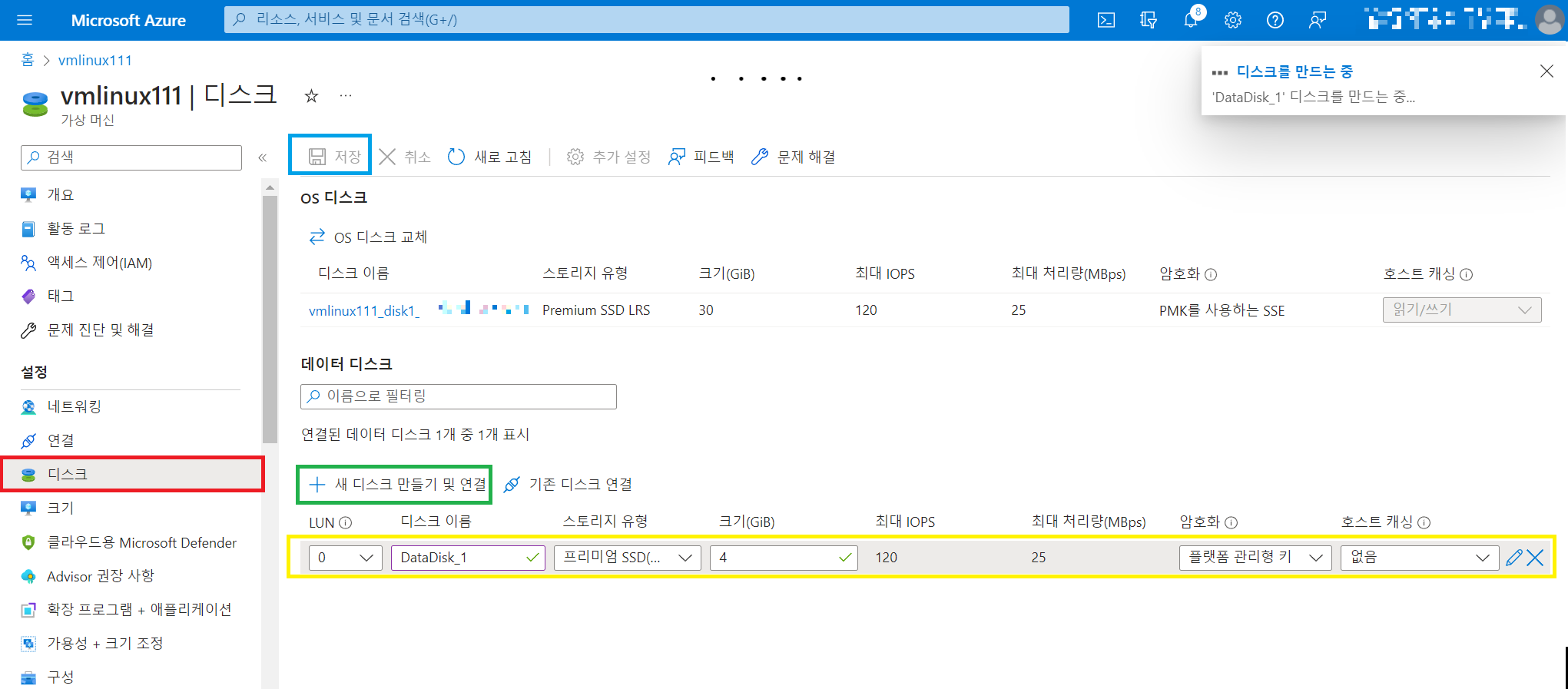 | OS 디스크 유형 | 프리미엄 SSD |