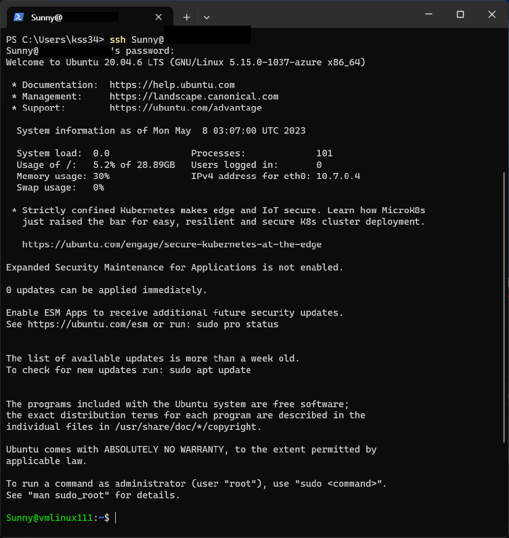> ssh myUser@**.**.***.***