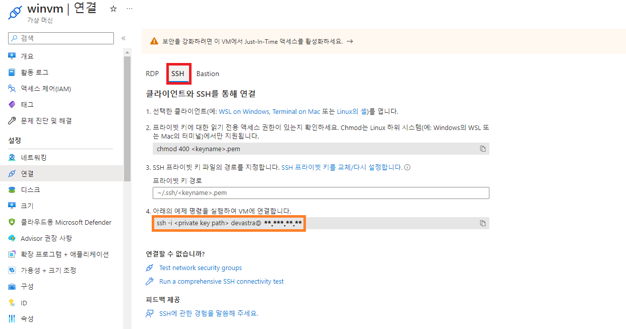 - 본인의 PC에서 SSH를 사용하여 Azure에서 배포한 윈도우 VM에 접속할 것이다.
