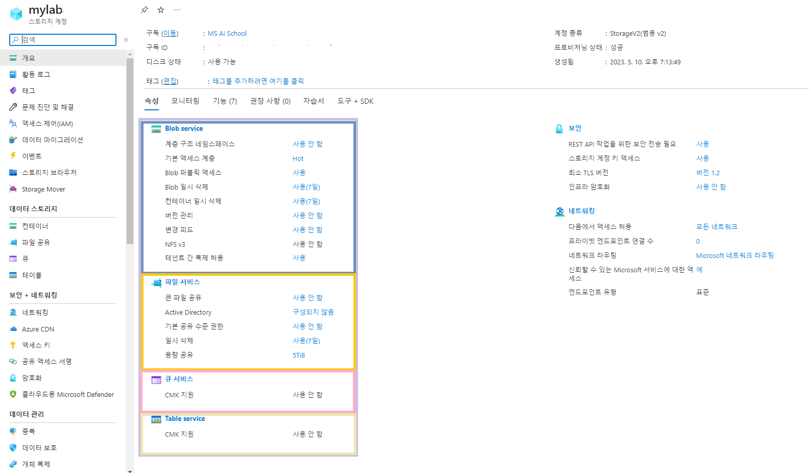 Azure 스토리지 계정(Storage Account) Blob Service/File Service/Queue Service 연동 및 실습