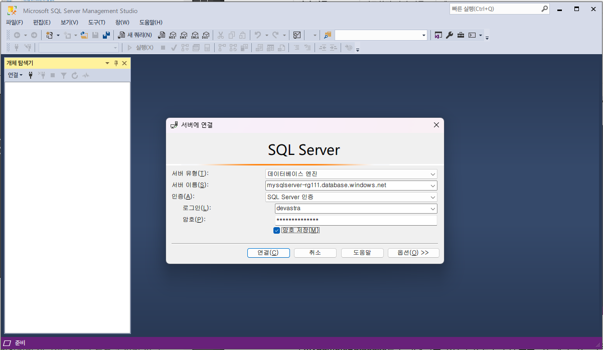 - [연결] 버튼을 클릭하면 개체 탐색기 창이 열린다.
