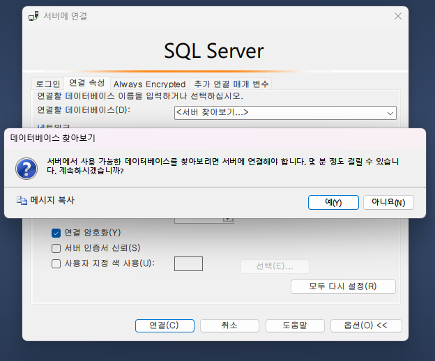| 인증 | SQL Server 인증 | 이번 실습에서는 SQL 인증을 사용한다. |