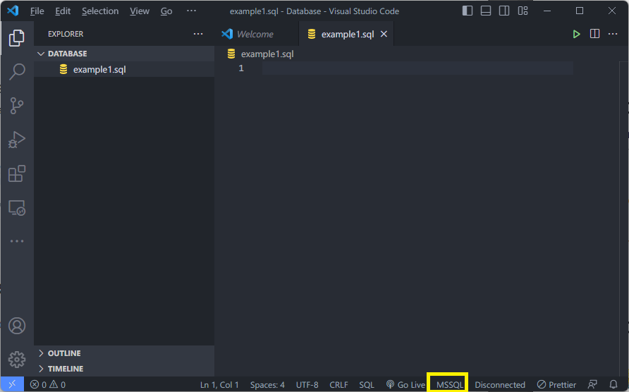 - VS Code에서 언어 모드를 @SQL@로 설정하여 @mssql@ 명령 및 T-SQL IntelliSense를 사용한다.