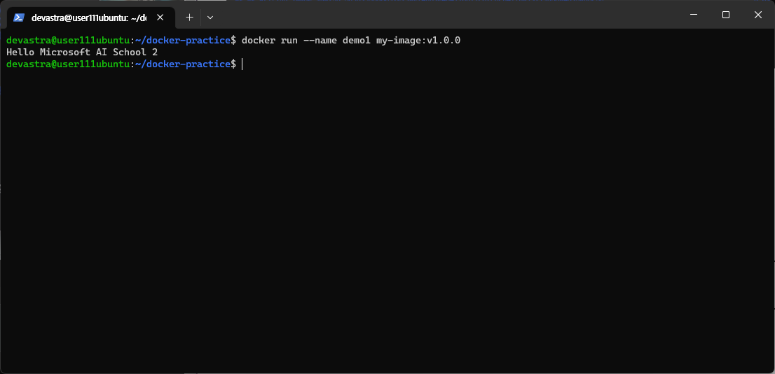 $ docker run --name demo1 my-image:v1.0.0