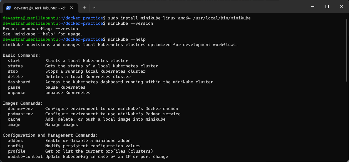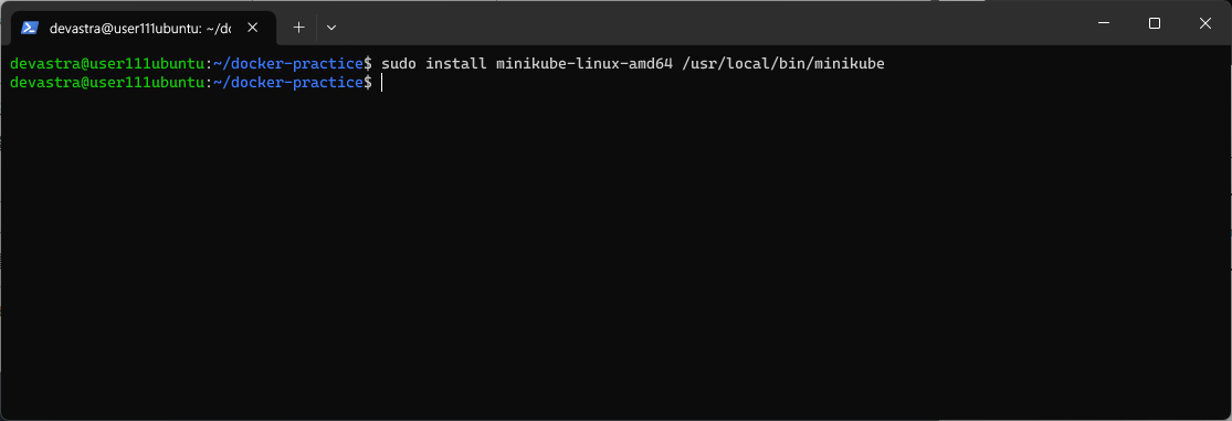 $ sudo install minikube-linux-amd64 /usr/local/bin/minikube