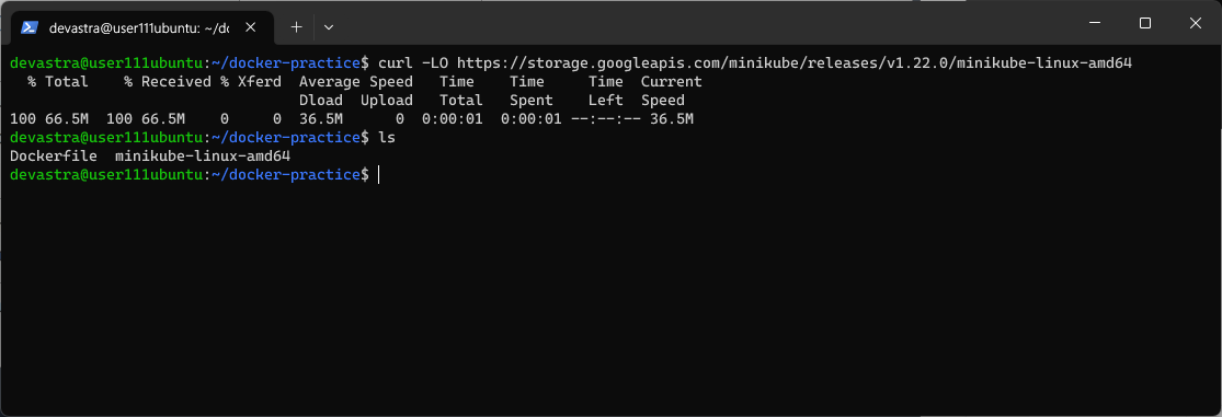 $ curl -LO https://storage.googleapis.com/minikube/releases/v1.22.0/minikube-linux-amd64