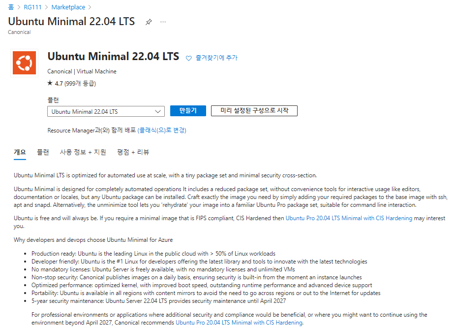 애저 포털에서 우분투(Ubuntu) VM 생성 및 배포하기