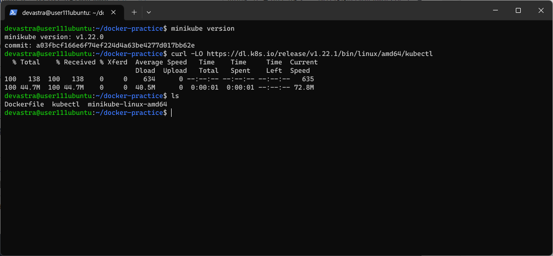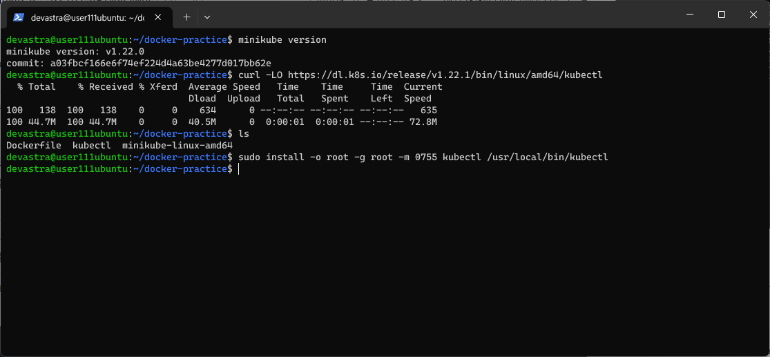 $ curl -LO https://dl.k8s.io/release/v1.22.1/bin/linux/amd64/kubectl