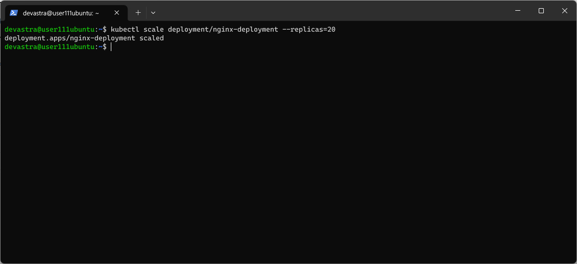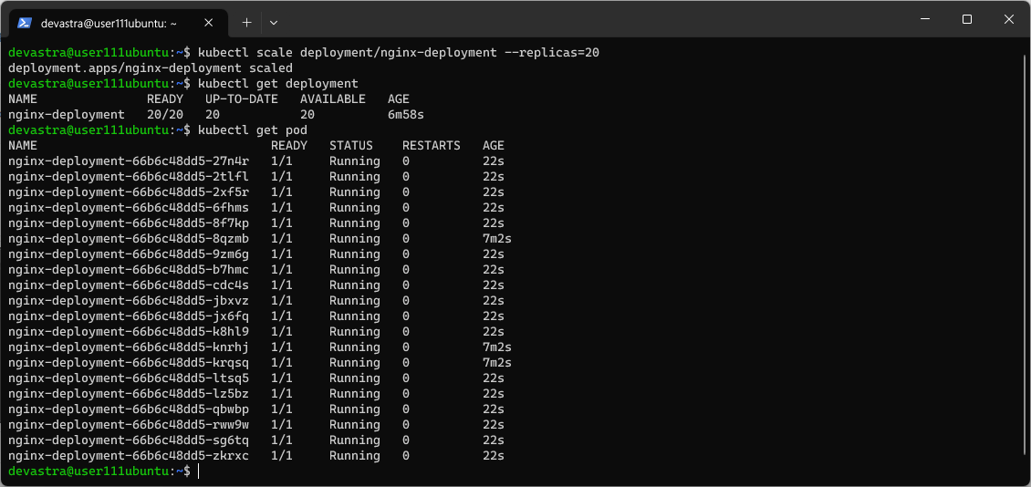 $ kubectl scale deployment/nginx-deployment --replicas=20