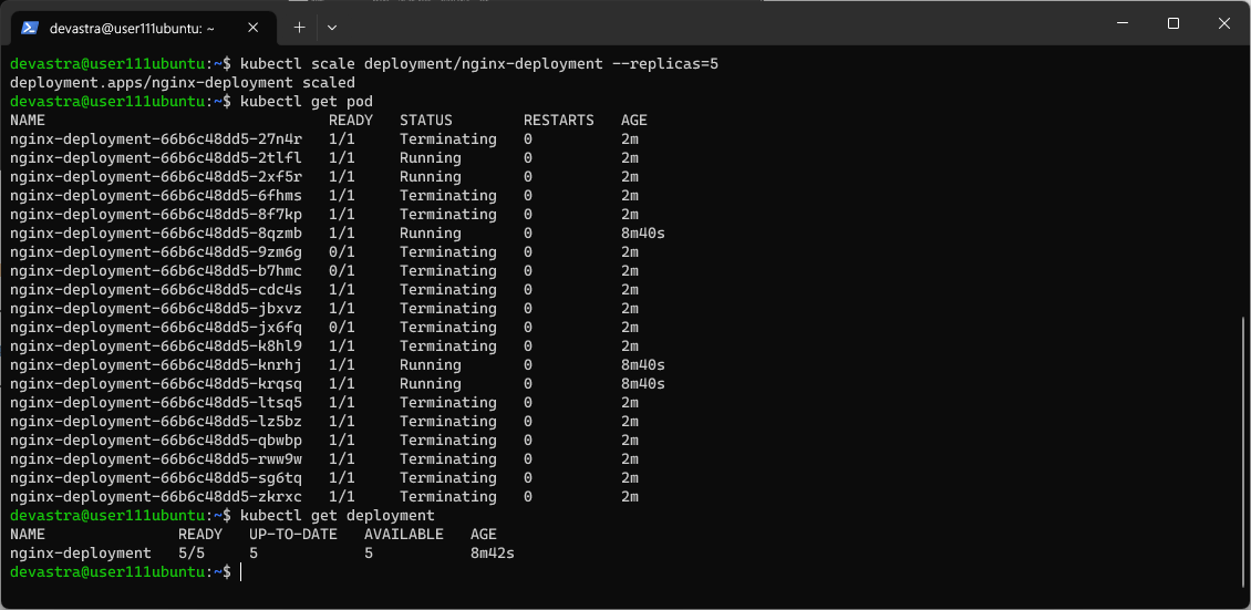 $ kubectl scale deployment/nginx-deployment --replicas=5