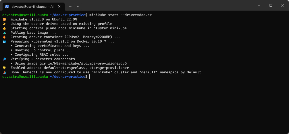 - 다음 명령을 실행해서 미니 쿠베를 작동시킨다. 만약 미니 쿠베가 작동하지 않을 경우, 이전에 수행했던 @delete@ 명령은 로컬에서 설치되어 있는 파일까지 삭제한 것이다. 작동할 경우, 메모리 상에 있는 미니 쿠베만 지워진 것이다.
