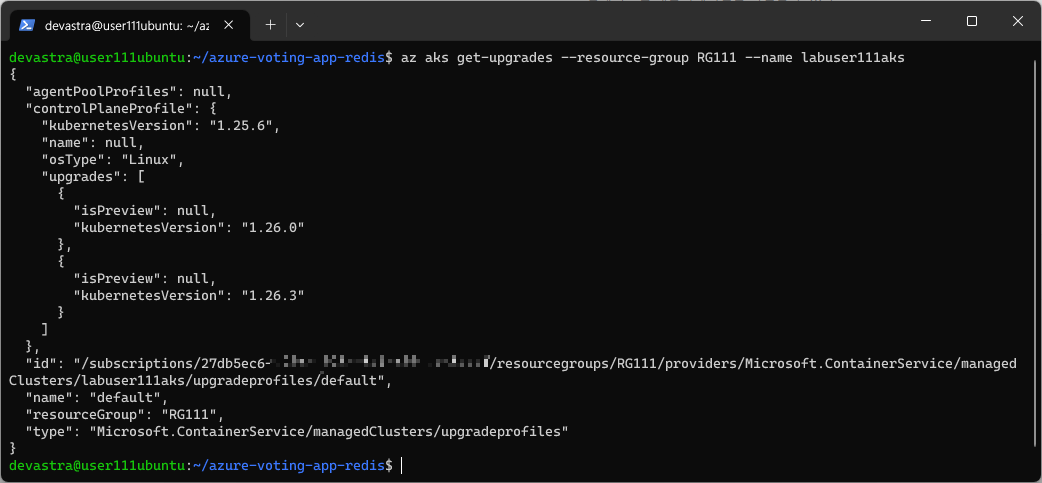 $ az aks get-upgrades --resource-group RG111 --name labuser111aks