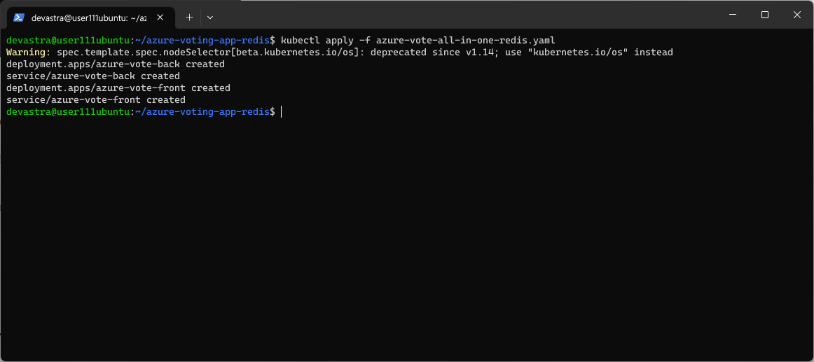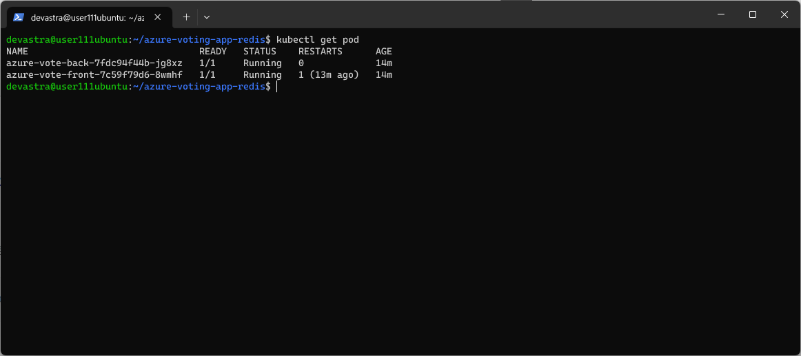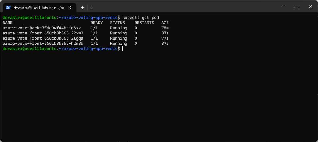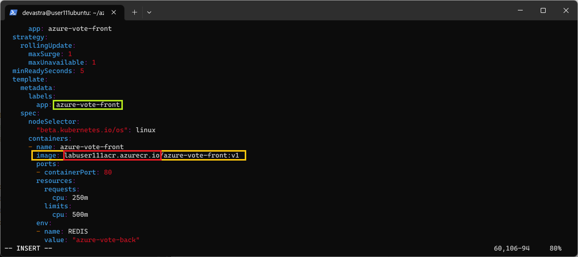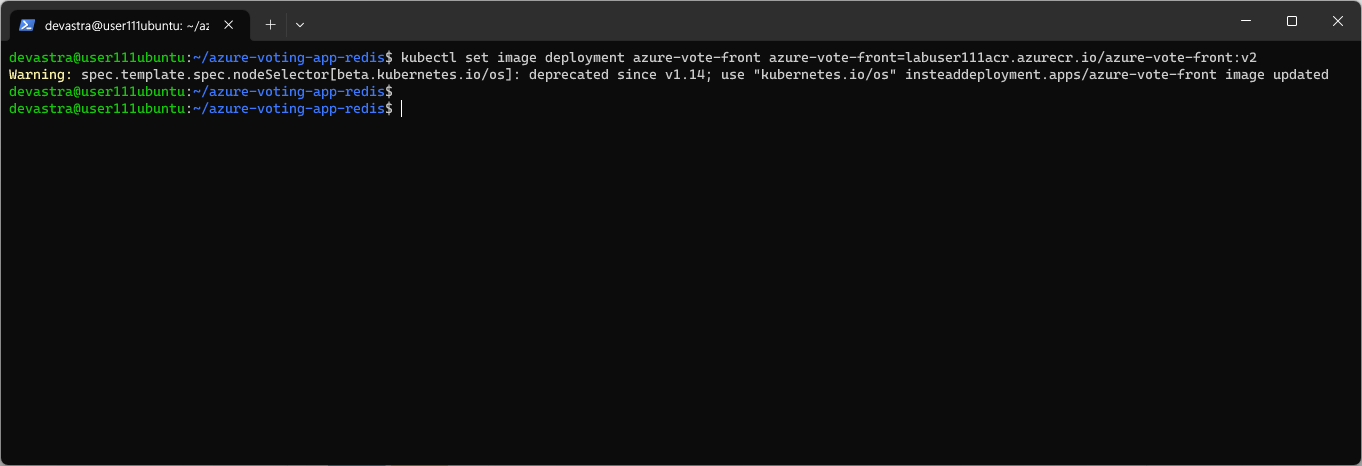 $ kubectl set image deployment azure-vote-front azure-vote-front=labuser111acr.azurecr.io/azure-vote-front:v2